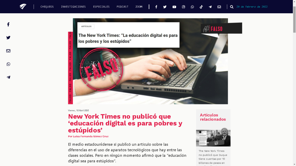 New York Times no publicó que ‘educación digital es para pobres y estúpidos’ | ColombiaCheck